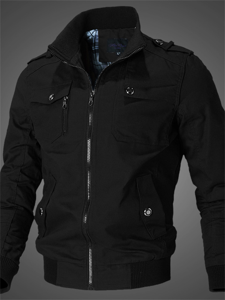 Men's Solid Color Casual Stand Up Collar Jacket