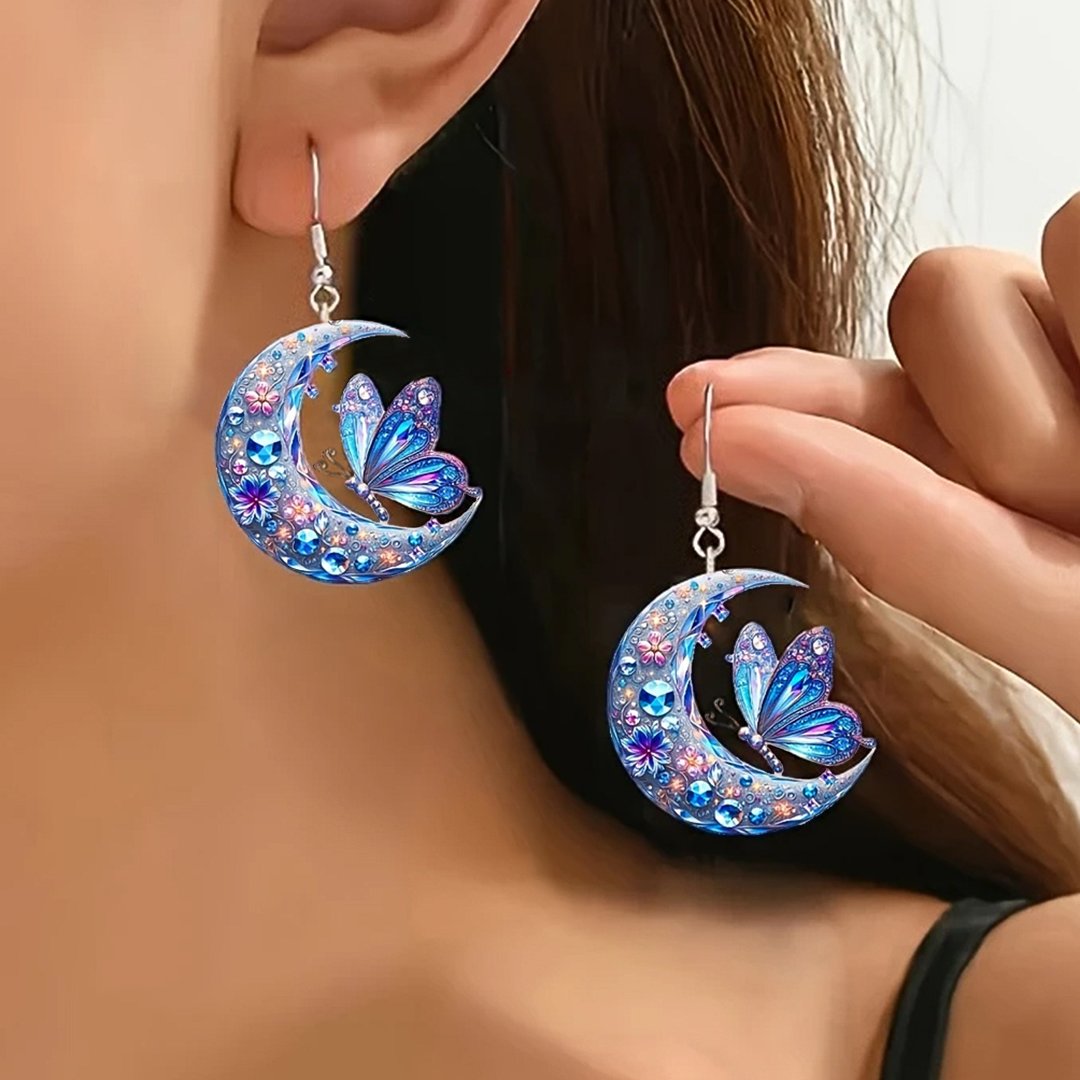 🌙🦋 Elegant Moon & Butterfly Dangle Earrings