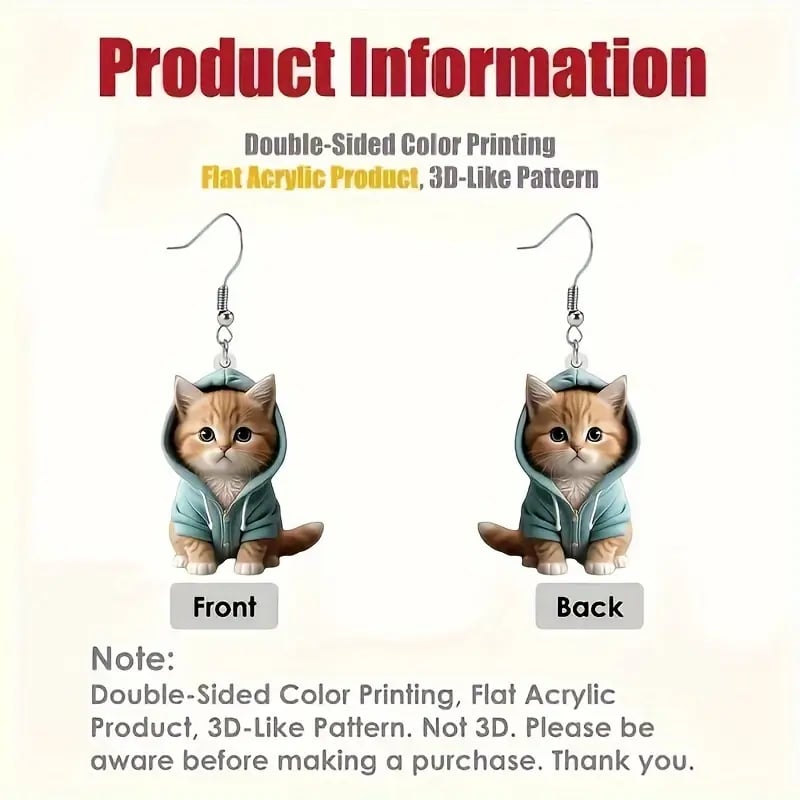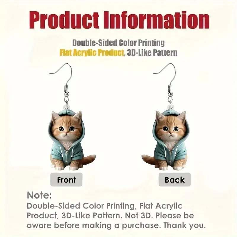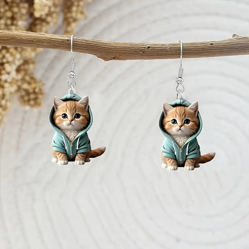 🐱 Unique Design: These earrings feature irresistibly cute kittens wearing tiny hoodies. bringing out a mix of warmth and fun. Perfect for cat lovers and anyone who loves whimsical accessories.