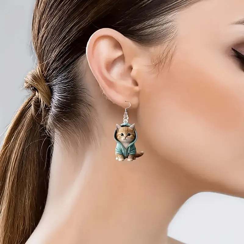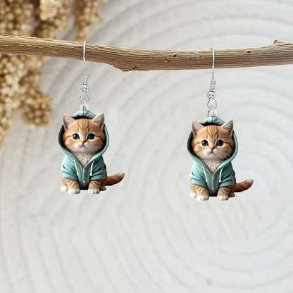 🌟 Exquisite Craftsmanship: Each earring is crafted with intricate details to capture the kitten's expressive face and cozy hoodie. making it a standout piece.