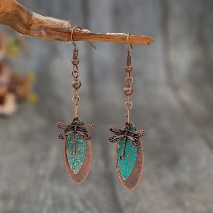 ❤️Featuring delicately sculpted dragonflies resting on rustic. leaf-shaped drops. each pair is a symbol of transformation. grace. and inner strength.
