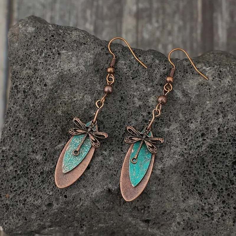 With their antique bronze tones and layered textures. these earrings evoke the beauty of nature and the elegance of old-world craftsmanship. The dragonfly—a timeless symbol of change and freedom—adds a poetic touch that speaks to your free spirit.