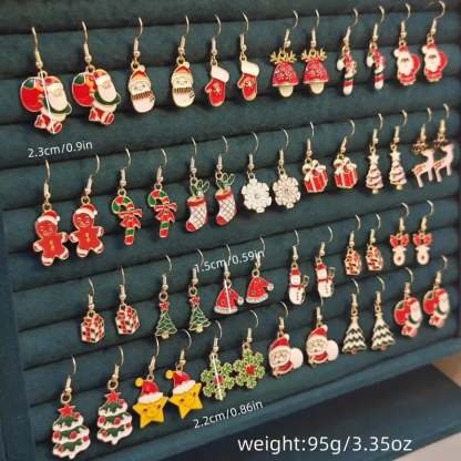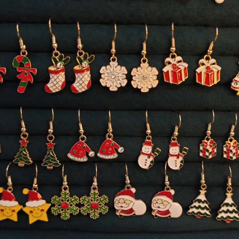Various Styles:you will receive 25 pairs of Christmas earrings in different designs. including Christmas tree. Christmas bells. Elk. Santa. candy cane . snowman. wreath. hat. snowflake. Easy to match with different outfits.