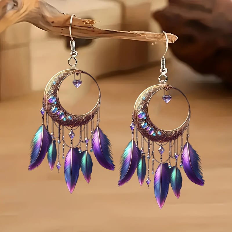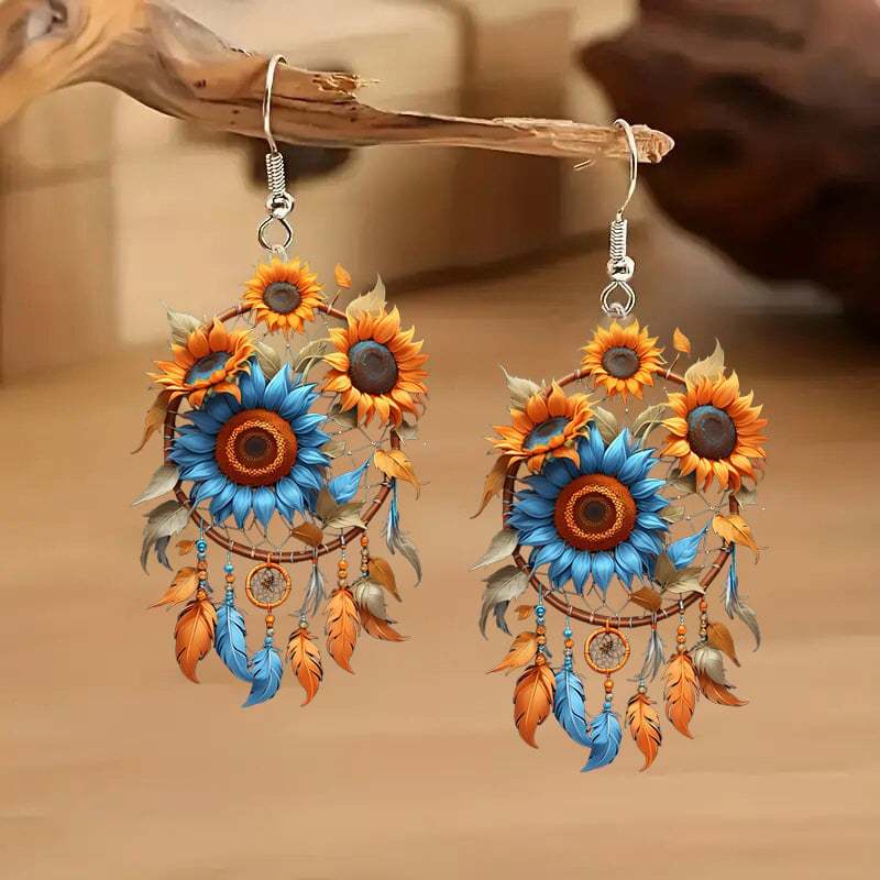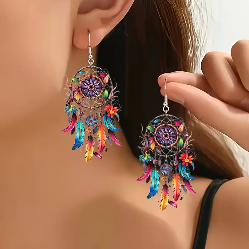 🪶🏵️Featuring intricate feathers and floral designs. these vibrant boho dreamcatcher earrings make a bold style statement while symbolizing protection. positivity. and self-expression.