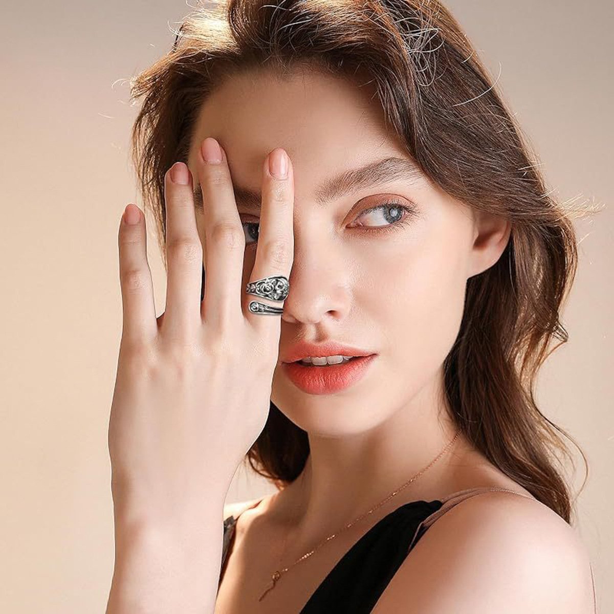 - 💀Adjustable Fit: The spoon ring design is adjustable. allowing you to find the perfect fit for your finger. Whether you wear it as a bold statement piece or a subtle addition to your outfit. it’s versatile and easy to wear.
