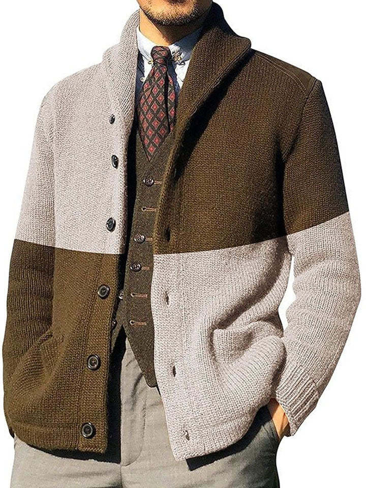 Cardigan Color Matching Button Long Sleeve Knitted Coat