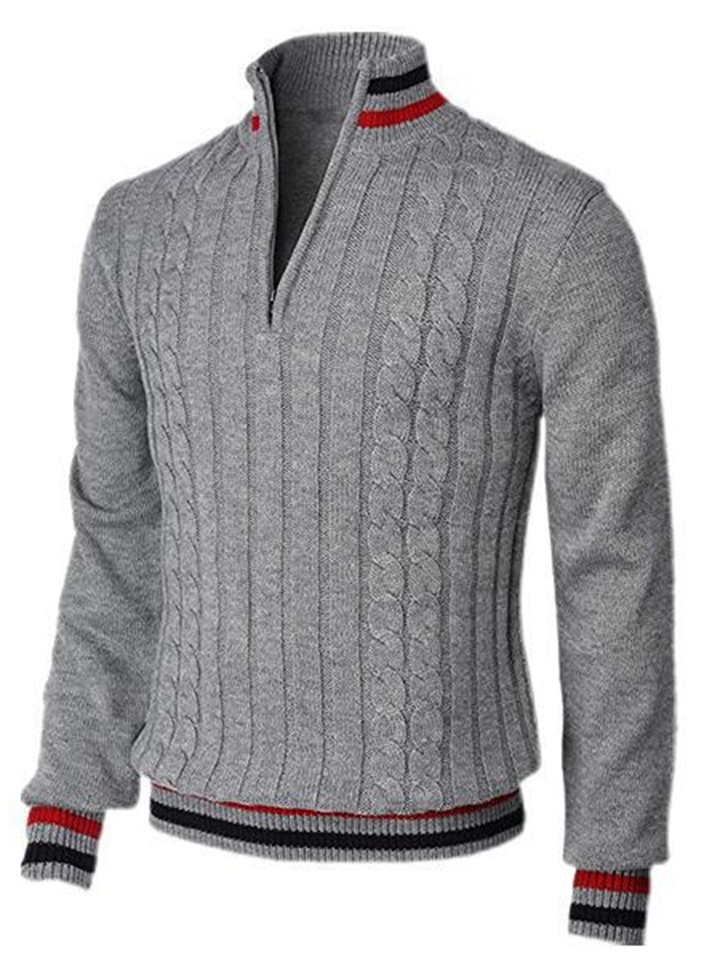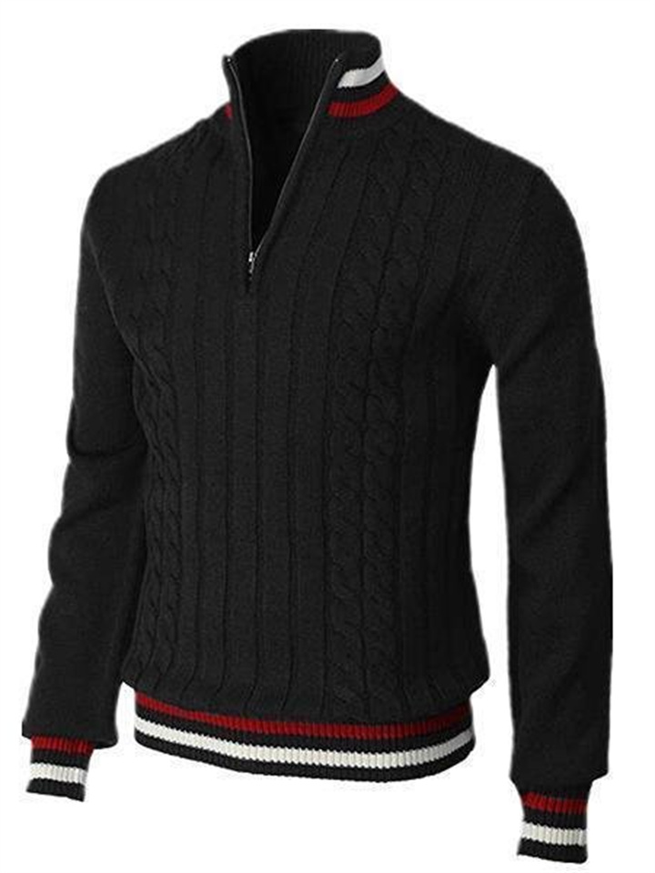 Color-block Zip-up Turtleneck Men's Knit Sweater