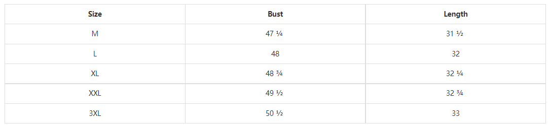 Bust (cm): M:120;L:122;XL:124;XXL:126;3XL:128