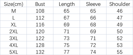 Size: M, L, XL, XXL, XXXL, XXXXL, 5XL