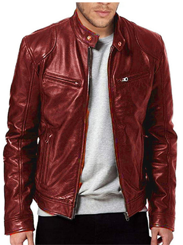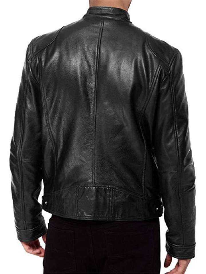 Men's Faux Leather Jacket Biker Jacket Motorcycle Jacket Thermal Warm Windproof Rain Waterproof Daily Wear Zipper Stand Collar Simple Casual Jacket Outerwear Solid Color Full Zip Black Brown