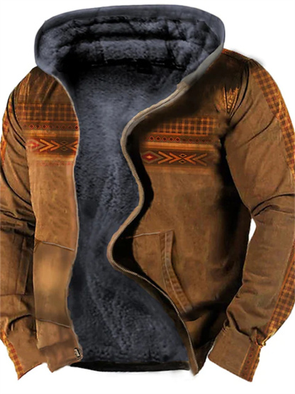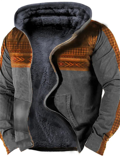 Men's Fleece Jacket Full Zip Hoodie Fleece Hoodie Sherpa Jacket Blue Khaki Brown Gray Hooded Graphic Prints Zipper Print Casual Daily Sports 3D Print Fleece Basic Designer Casual Fall & Winter