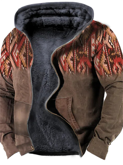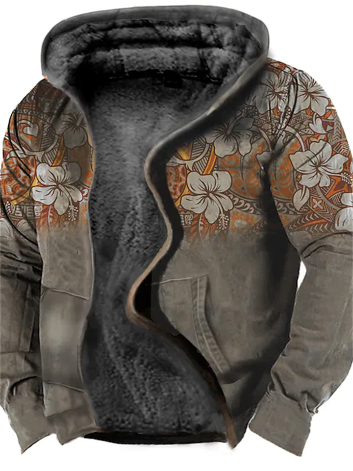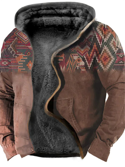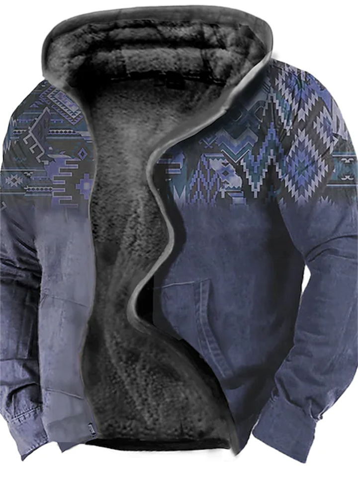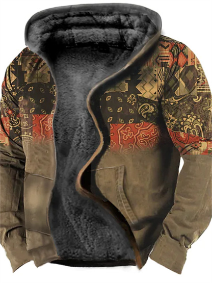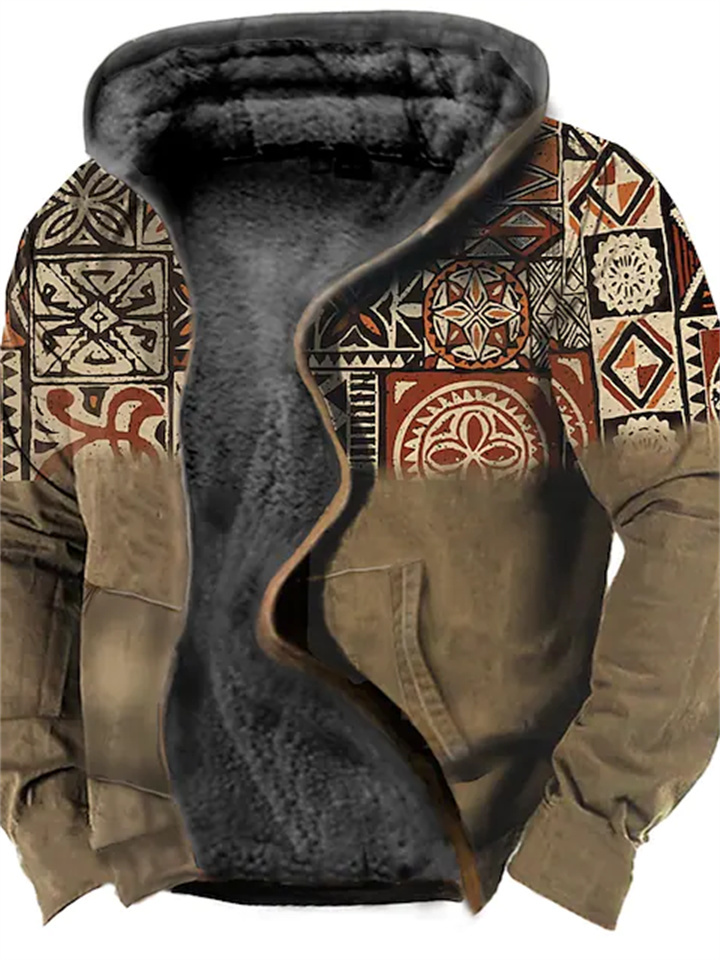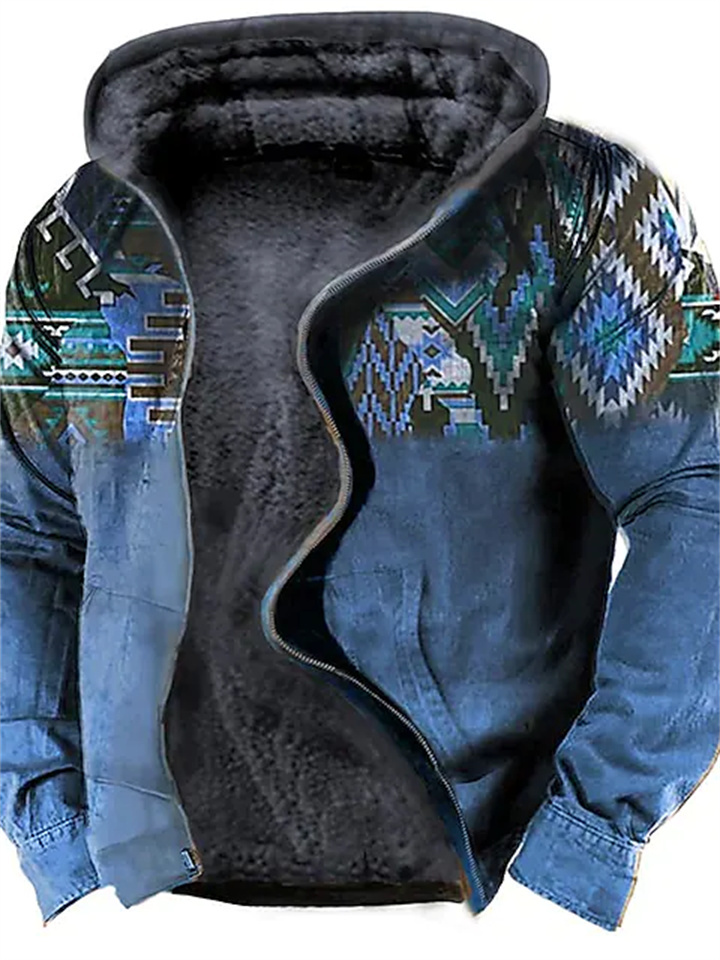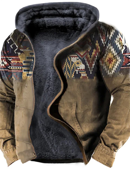 Men's Fleece Jacket Full Zip Hoodie Fleece Hoodie Sherpa Jacket Denim Blue Blue Yellow Camel Orange Hooded Tribal Graphic Prints Zipper Print Casual Daily Sports 3D Print Fleece Basic Designer Casual