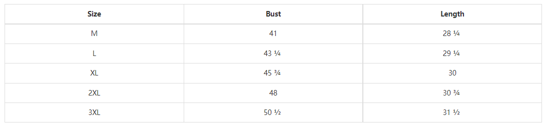 Bust (cm): M:104;L:110;XL:116;2XL:122;3XL:128