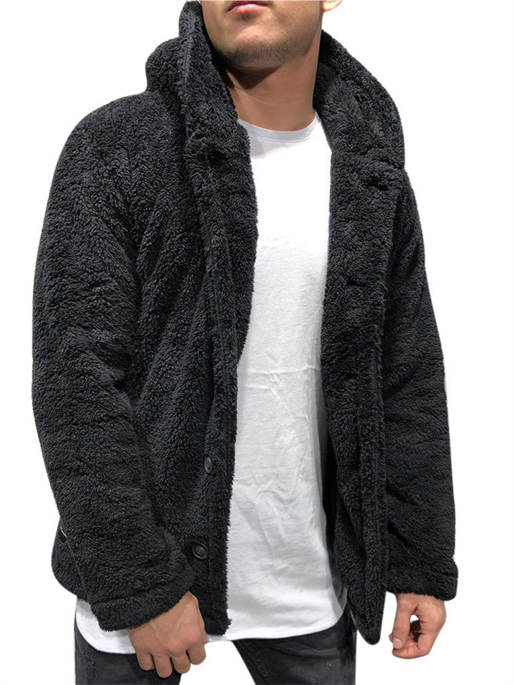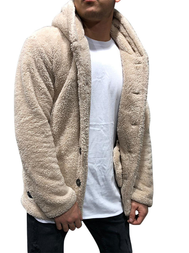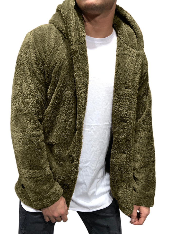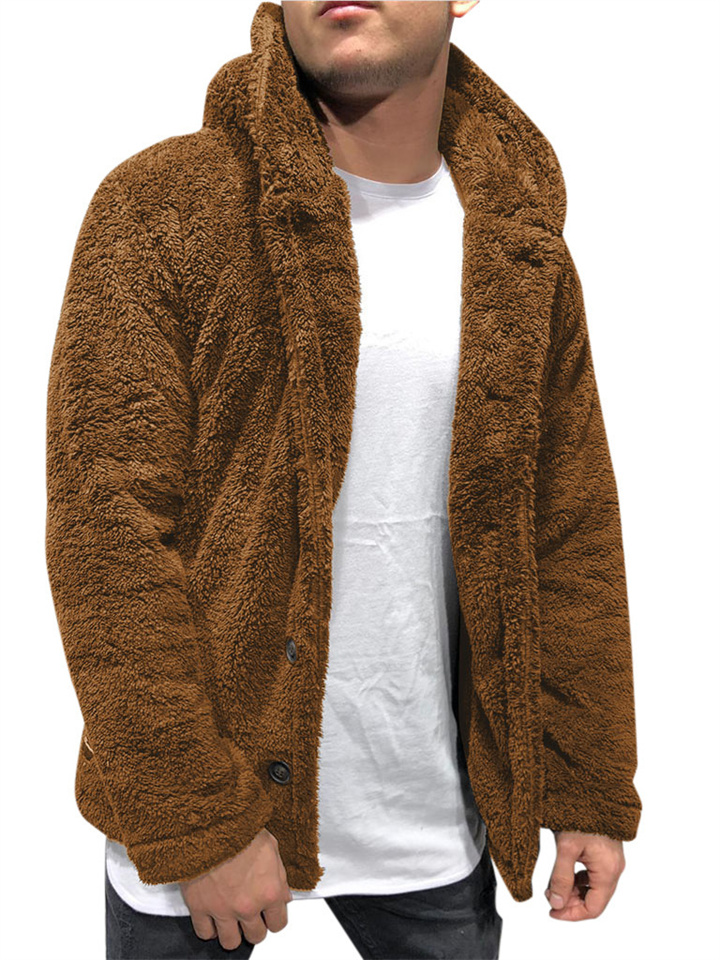 mens fuzzy sherpa jacket hoodie fluffy fleece open front cardigan button down soft coat fall outwear winter warm thicken lined jackets with pocket for men brown