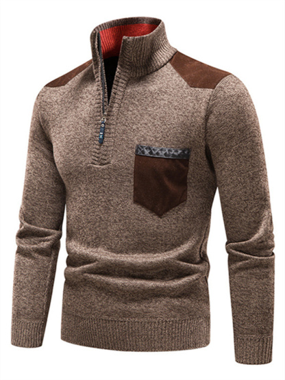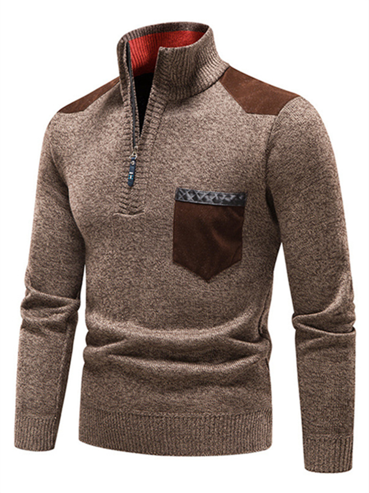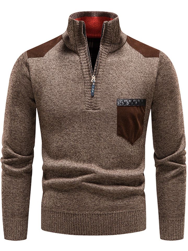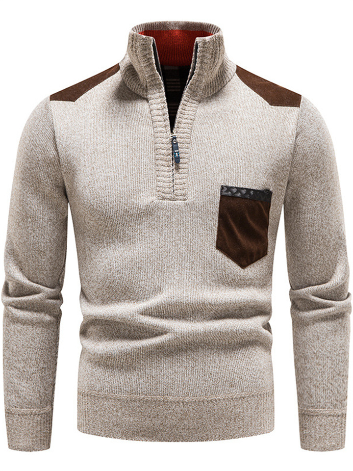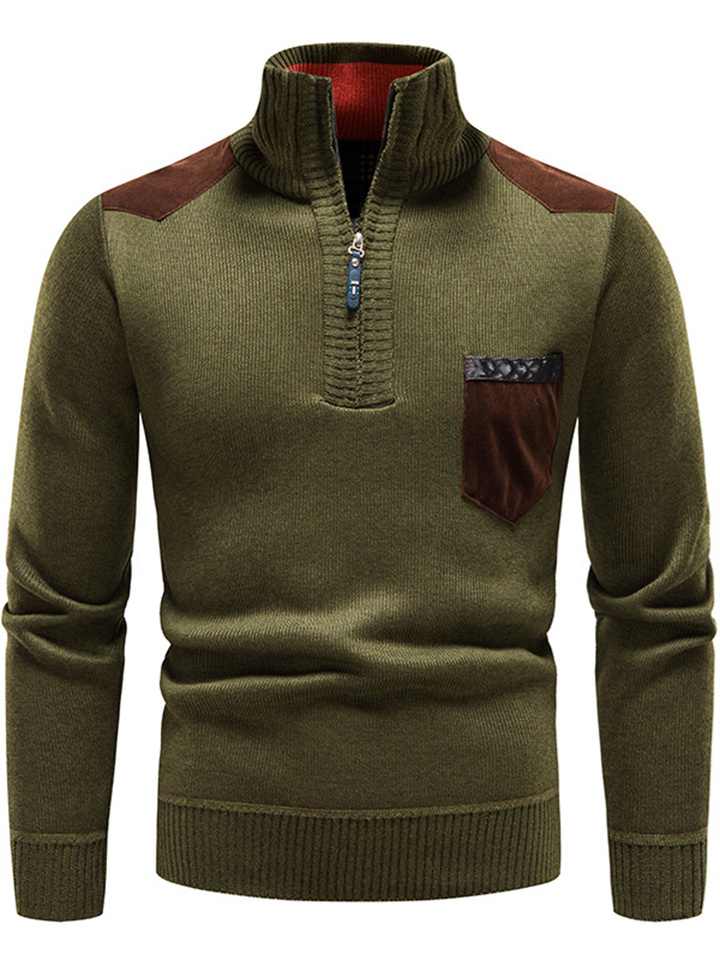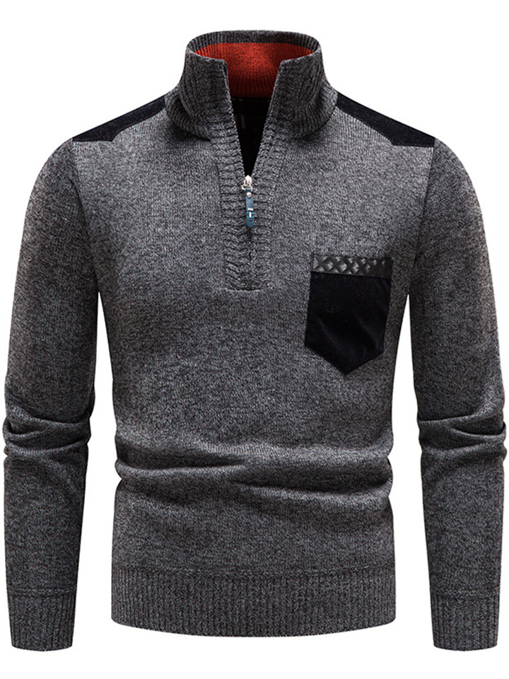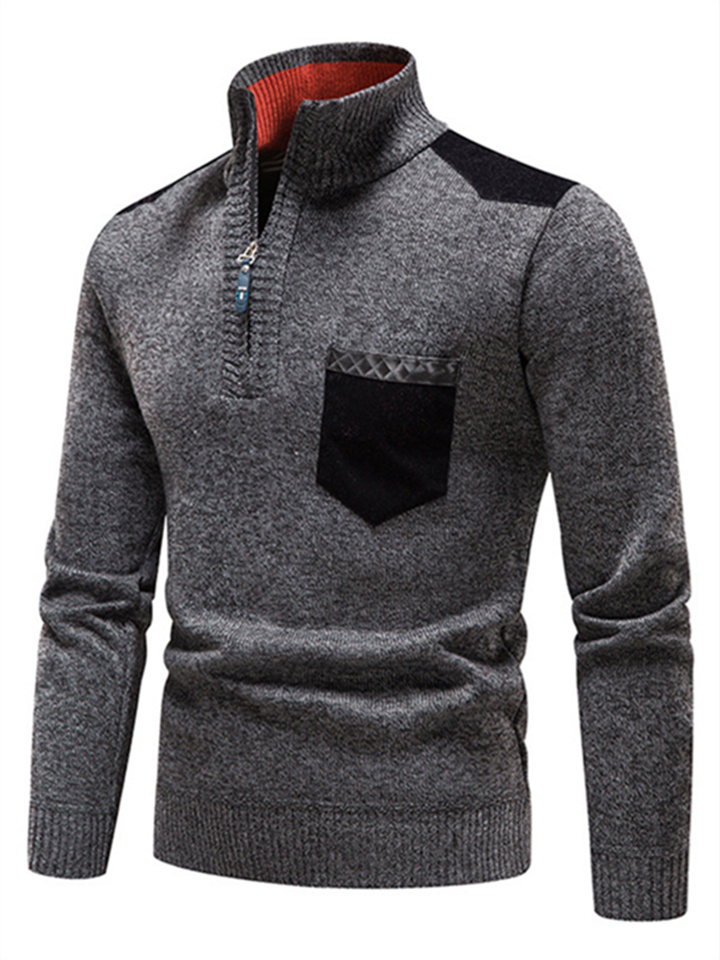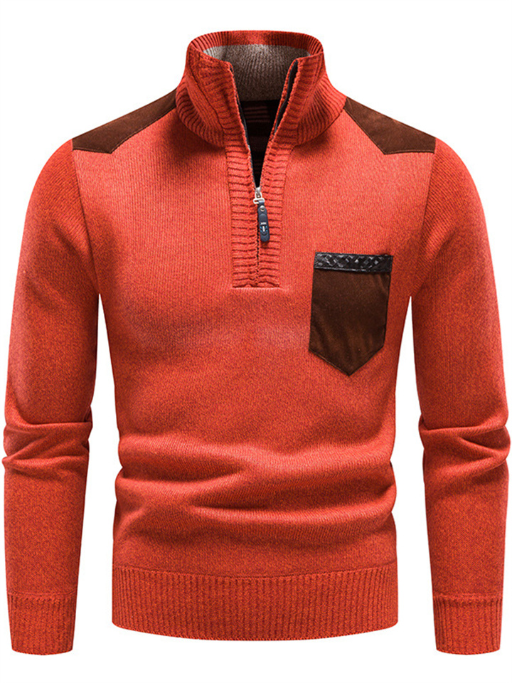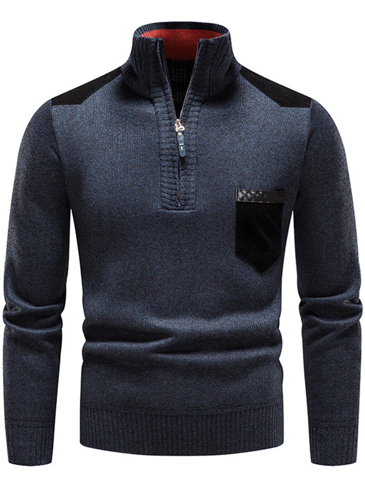 Men's Pullover Sweater Jumper Fleece Sweater Ribbed Knit Zipper Knitted Color Block Half Zip Basic Keep Warm Work Daily Wear Clothing Apparel Fall & Winter Blue Red & White M L XL