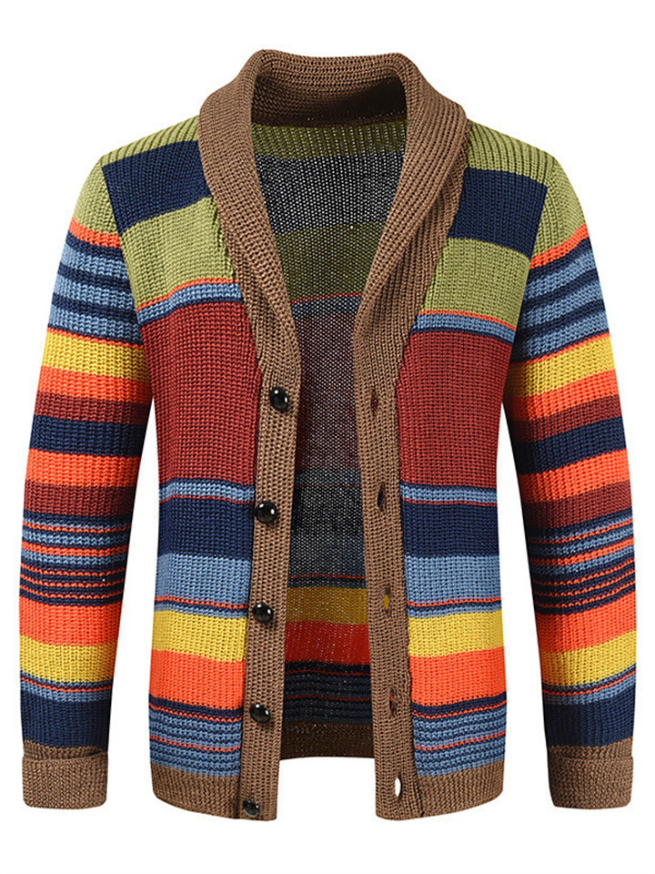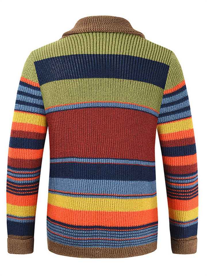 Men's Rainbow Sweater New Sweater Jacket Autumn and Winter Lapel Colorblocking Sweater