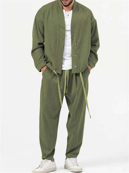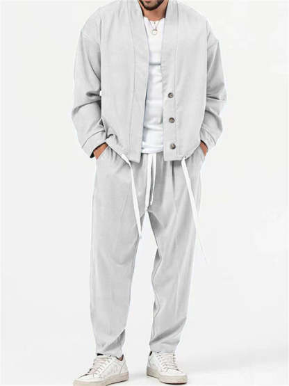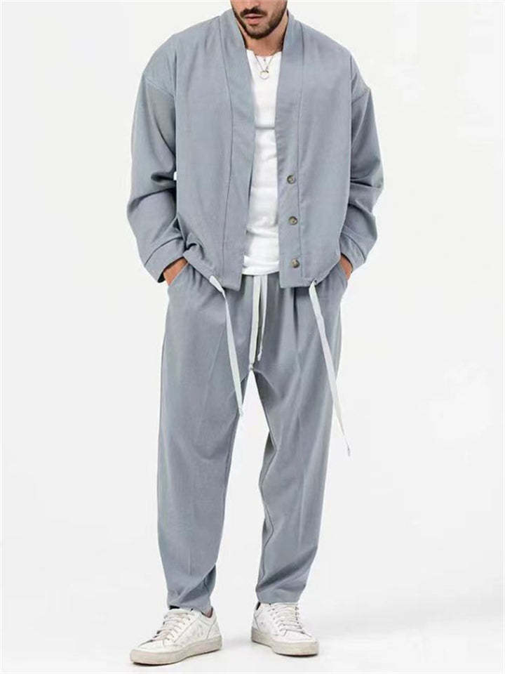Men's Simple Oversized Drawstring Hem Shirt + Baggy Pants