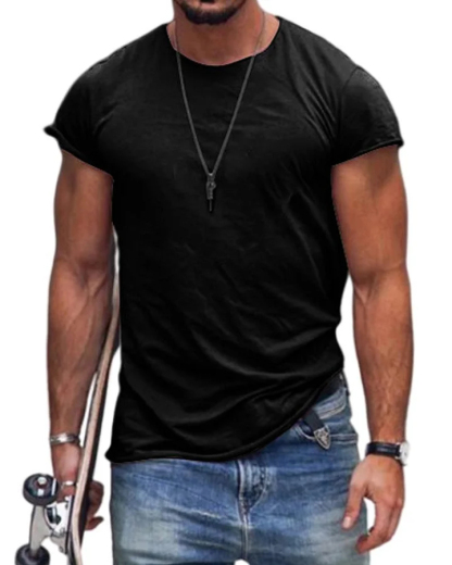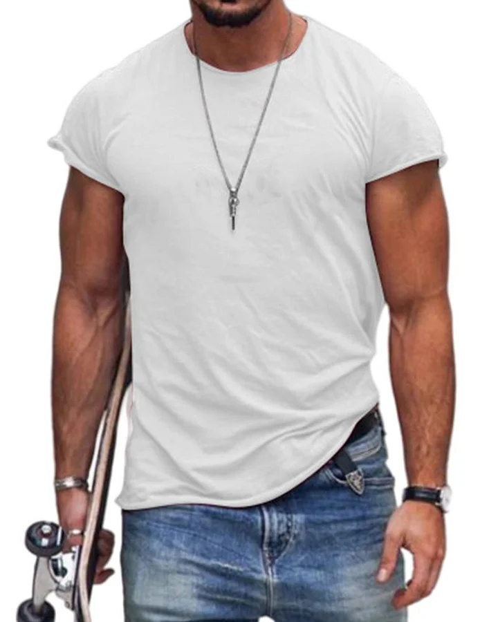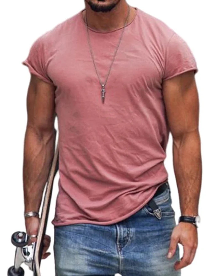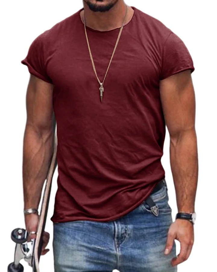 Mens Slim Fit T-shirt Bodybuilding Cotton Short Sleeve Solid Basic Fitness