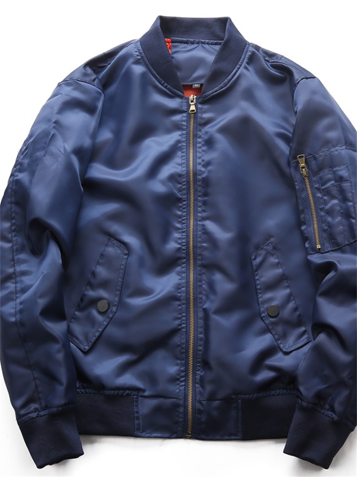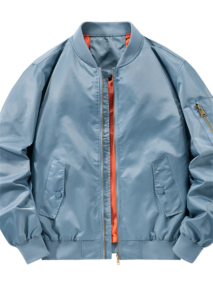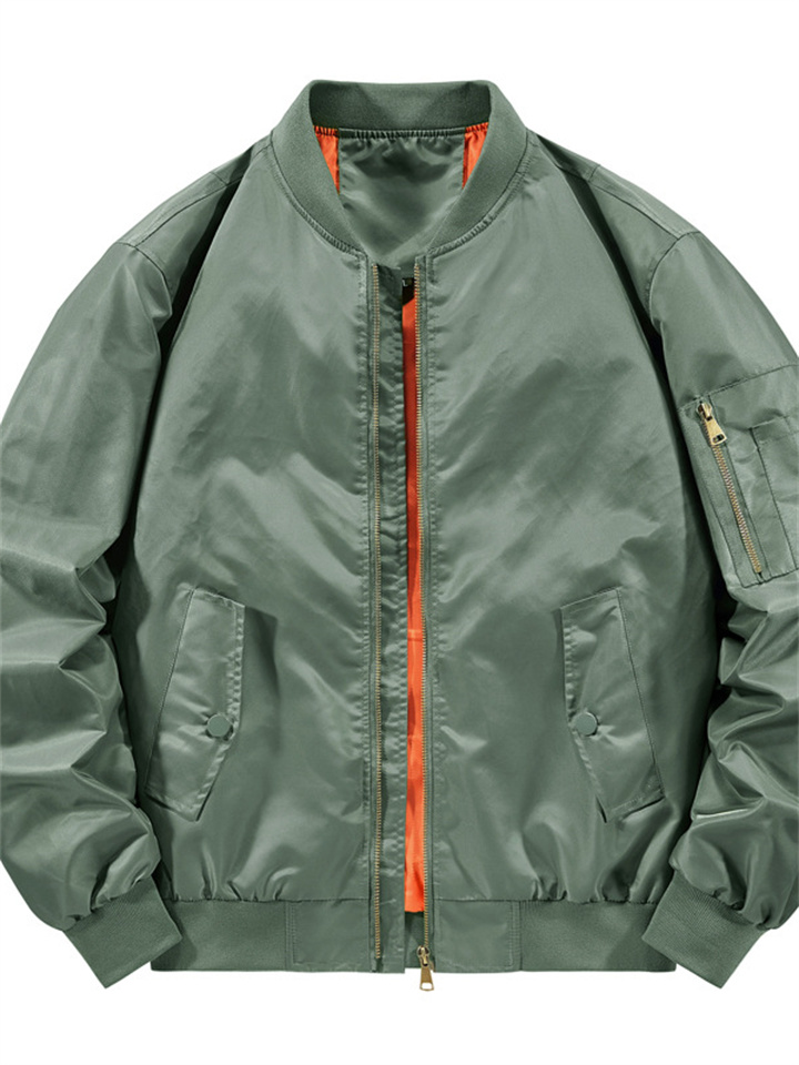 Men's Solid Color Casual Stand Up Collar Jacket
