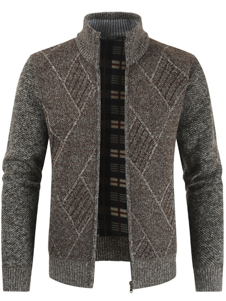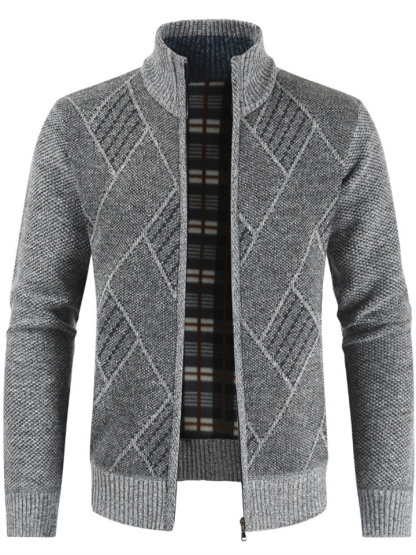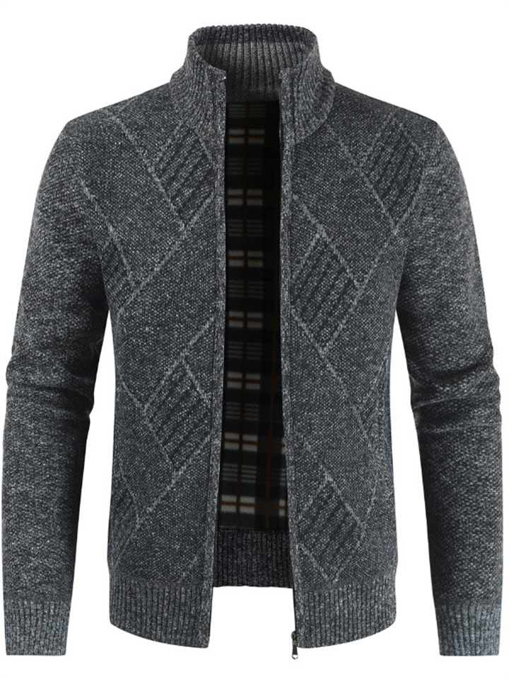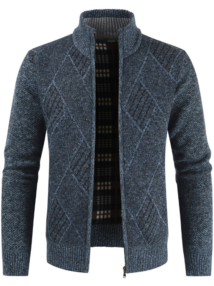 Men's Sweater Cardigan Sweater Zip Sweater Sweater Jacket Fleece Sweater Ribbed Knit Zipper Geometric Stand Collar Casual Daily Clothing Apparel Winter Fall Blue Light Grey XS S M