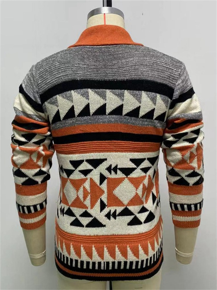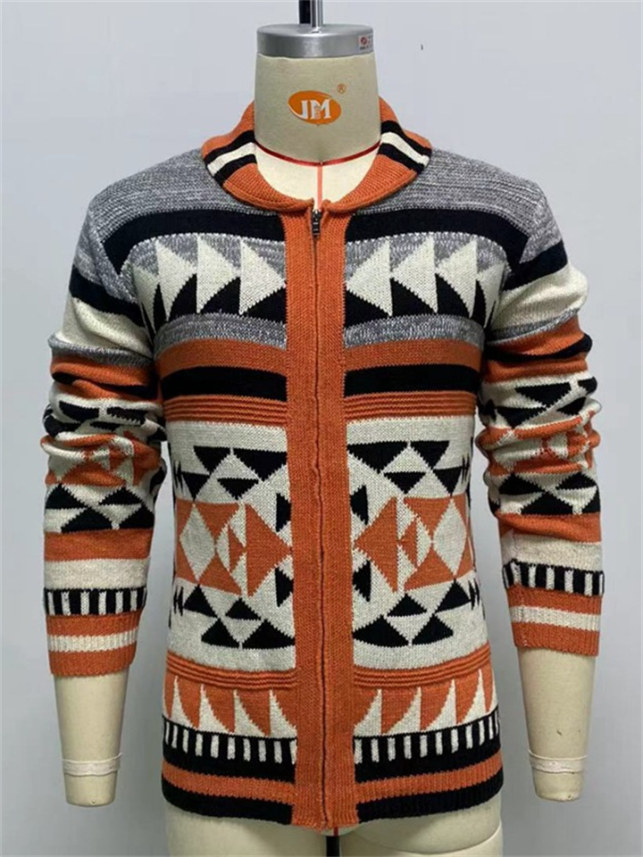 Men's Sweater Cardigan Zip Sweater Sweater Jacket Knit Button Knitted Geometric Shirt Collar Casual Clothing Apparel Winter Fall Red M L XL
