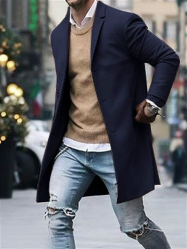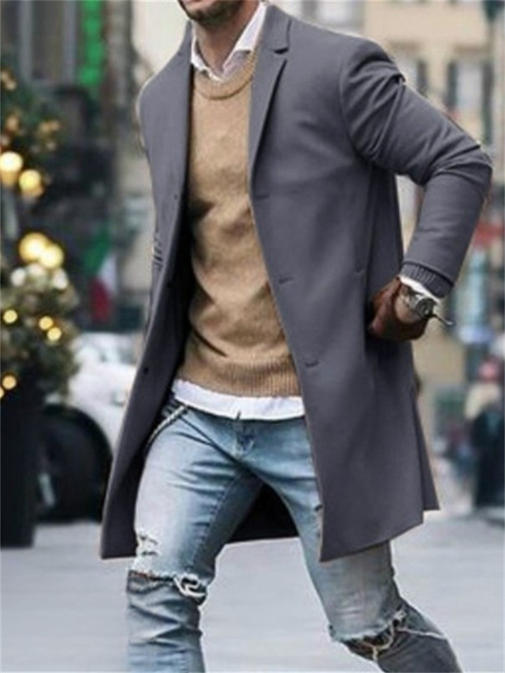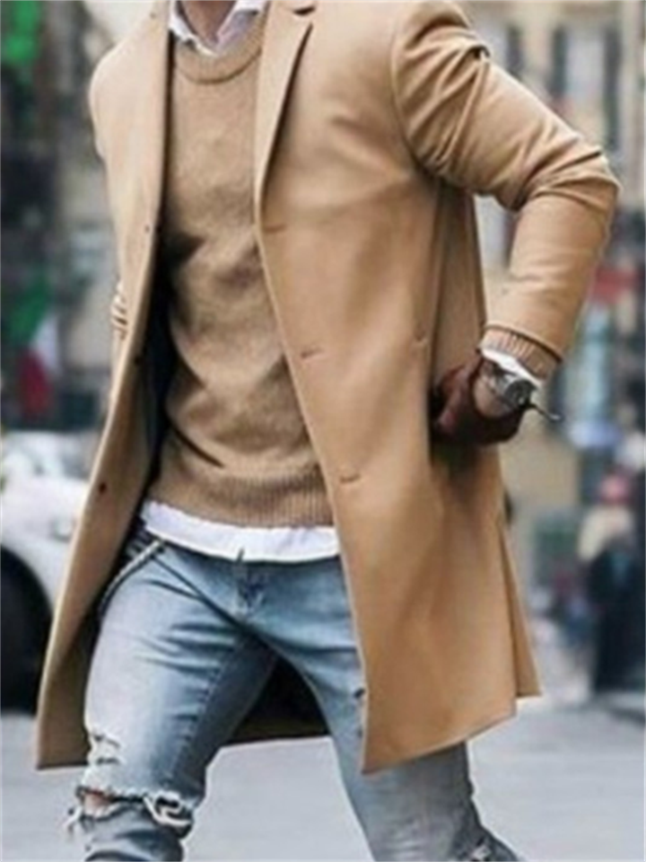 Men's Winter Coat Overcoat Coat Trench Coat Business Casual Fall Spring Polyester Outerwear Clothing Apparel Streetwear Solid Color Patchwork Stand Collar Single Breasted