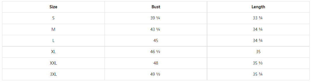 Bust (cm): S:100;M:110;L:114;XL:118;XXL:122;3XL:126