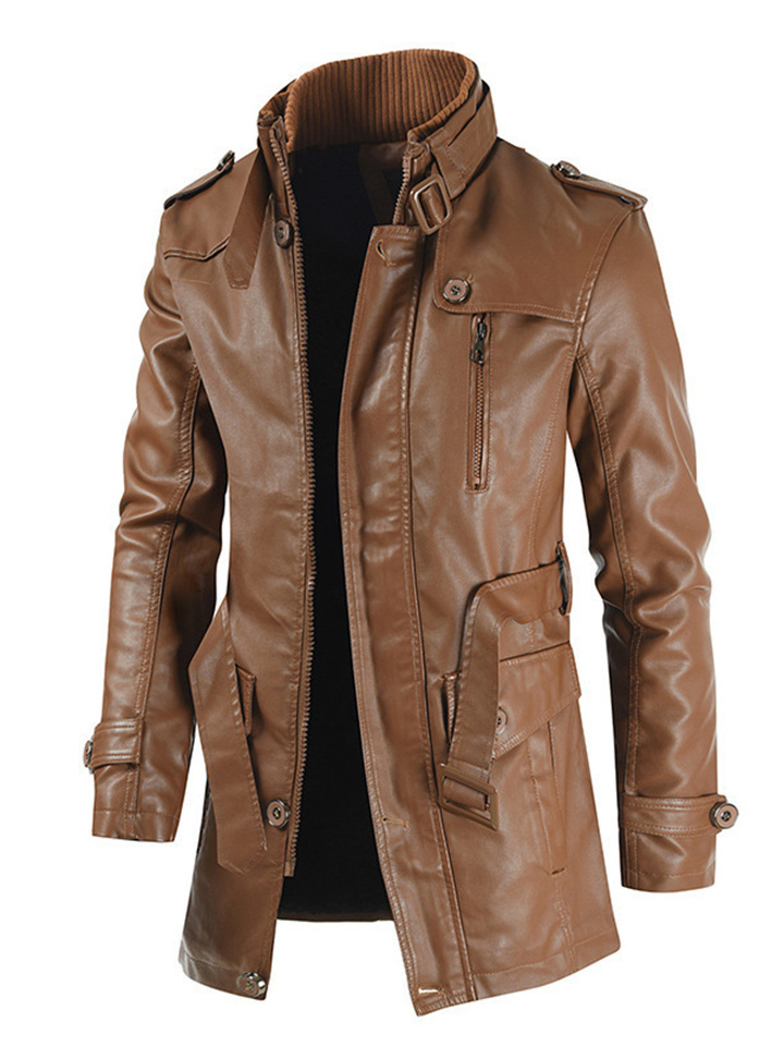 Men's Winter Coat Short Coat Business Casual Winter Polyester Windproof Warm Outerwear Clothing Apparel Stylish Classic & Timeless non-printing Solid Color Pocket Stand Collar Single Breasted