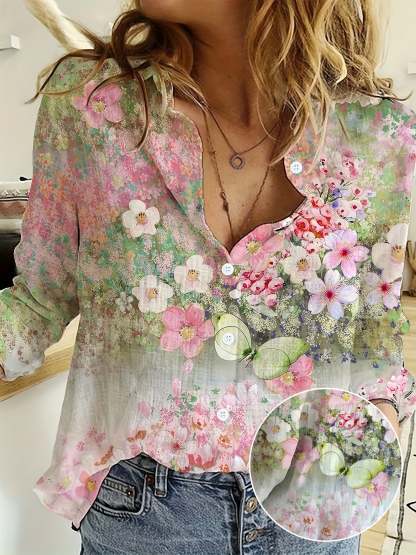 Step into spring with the soft charm of the Finddbest™ - Whimsical Bloom Shirt. Delicately scattered florals and subtle butterflies breathe life into this lightweight blouse, making it perfect for casual brunches, picnics, or quiet afternoons with a good book.