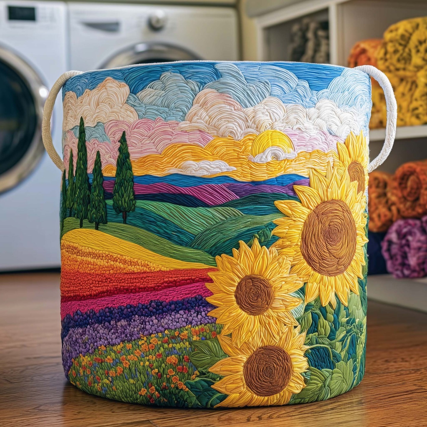 Rainbow Hills Quilted Laundry Basket GFTOQM1744