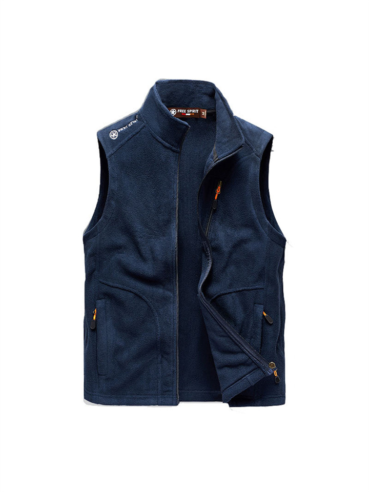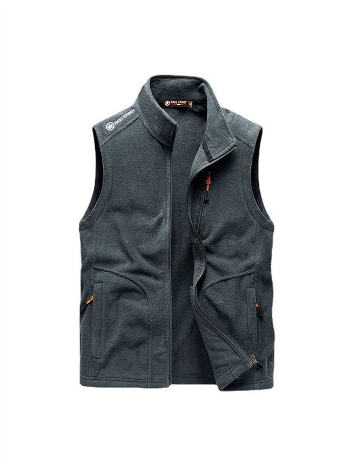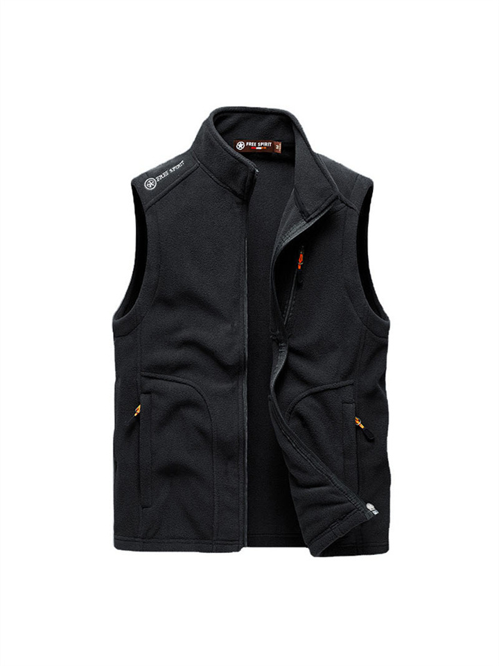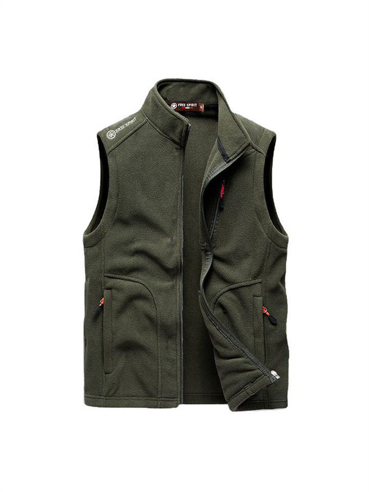 Rocker Fleece Vest Men's Fall and Winter Sleeveless Fleece Jacket Handsome Solid Color Warm Undershirt Shoulders Large Size Outdoor Mountaineering Clothing
