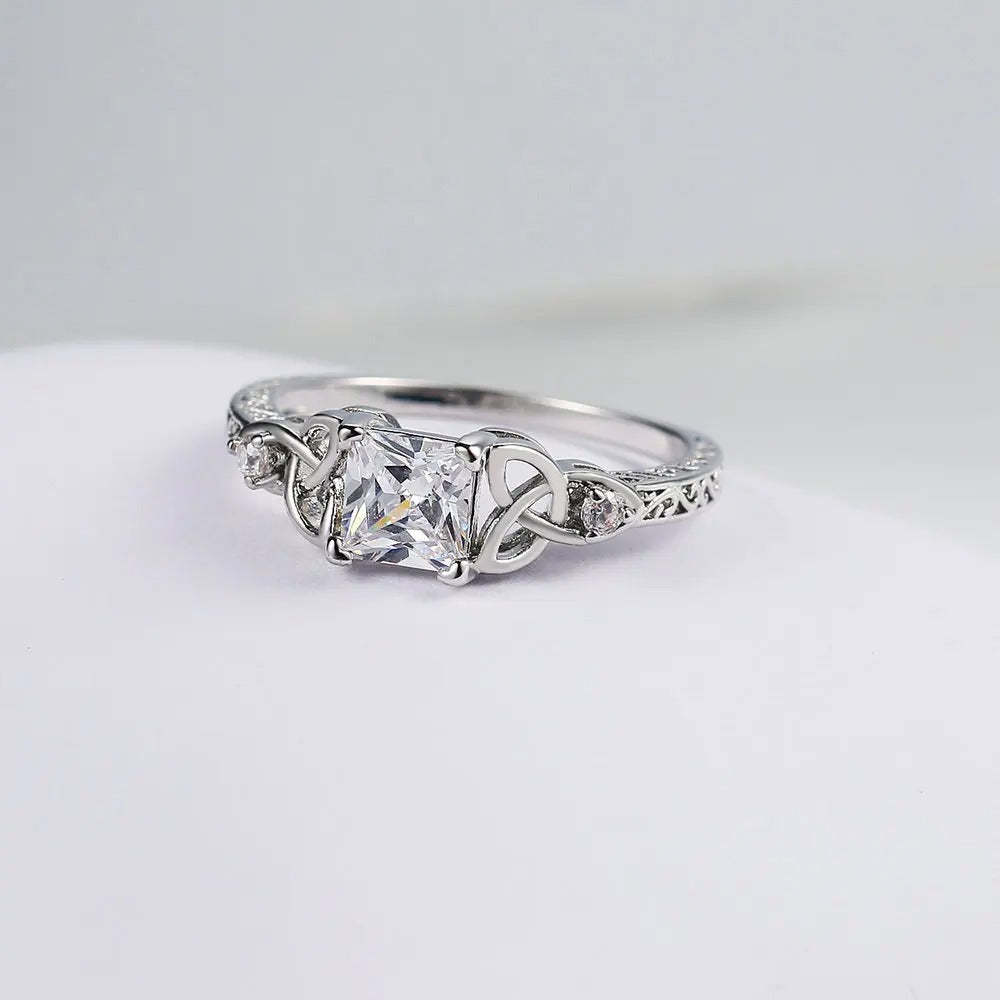 Silver Center Square Gem Knot Design Ring