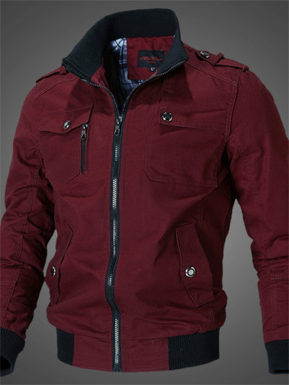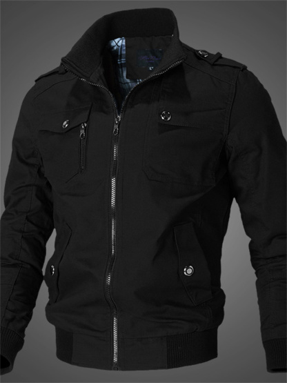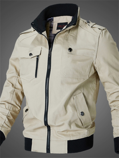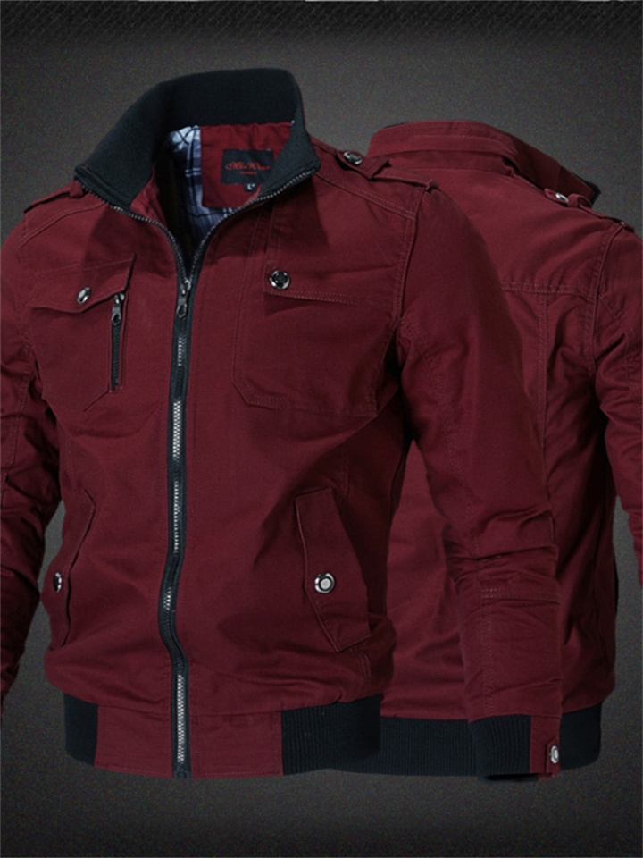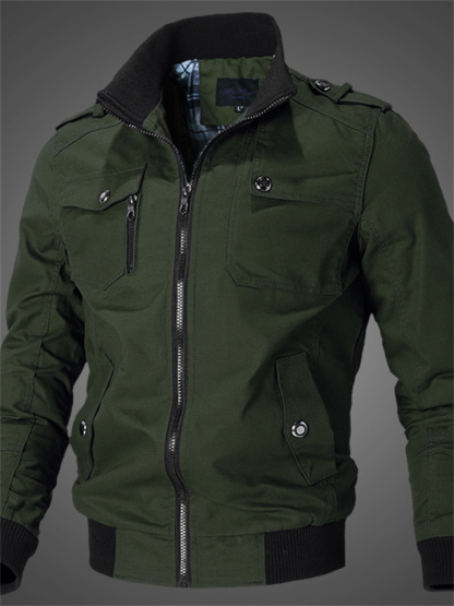Solid Color Casual Stand Collar Men's Jacket Cotton Coat