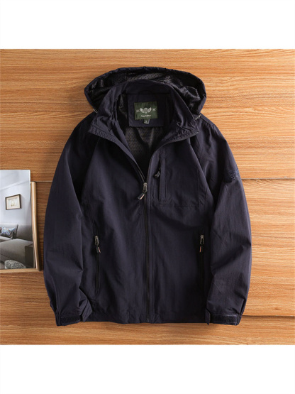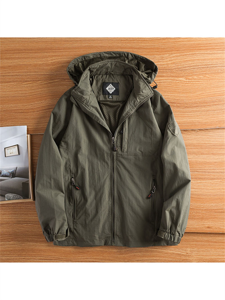 Solid Color Jacket Men Windbreaker Windproof Rushing Jacket Casual Loose Hooded Professional Outdoor Windproof Jacket